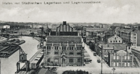 • Spei­cher­stra­ße 8: „Städ­ti­sches Lager­haus“ (heu­te „Len­sing Media Port“)
